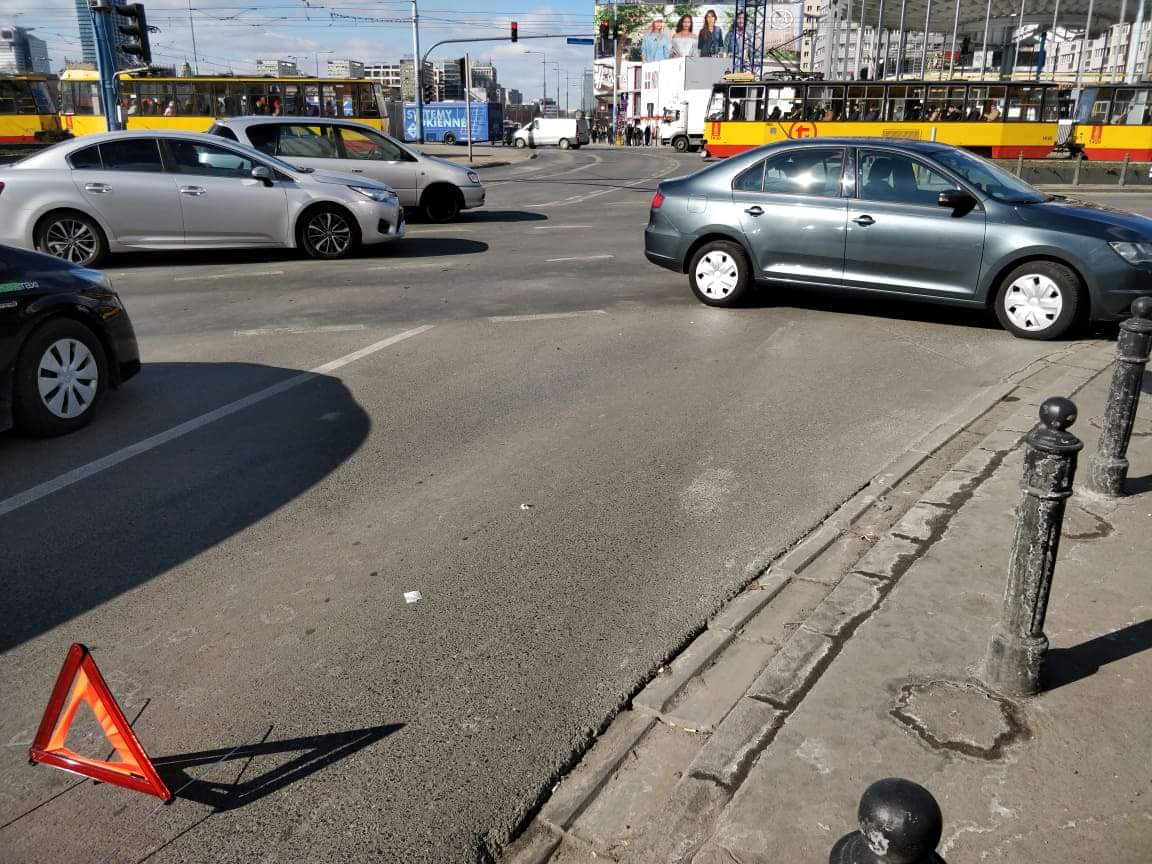 Duże utrudnienia czekają na kierowców na rondzie Dmowskiego. Na pasie w kierunku Pragi zderzyły się dwa auta osobowe.