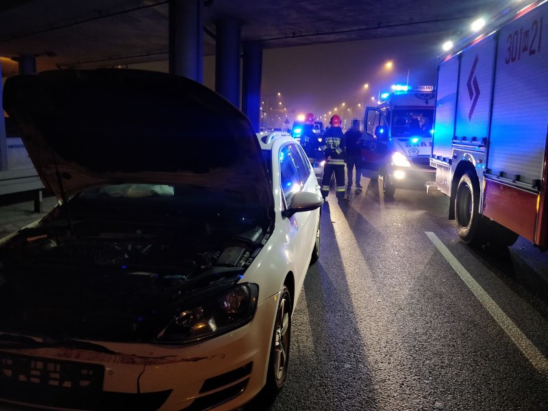 Do zdarzenia doszło na trasie S8, na wysokości ul. Głębockiej. Na pasie w kierunku Marek samochód osobowy uderzył w tył ciężarówki.