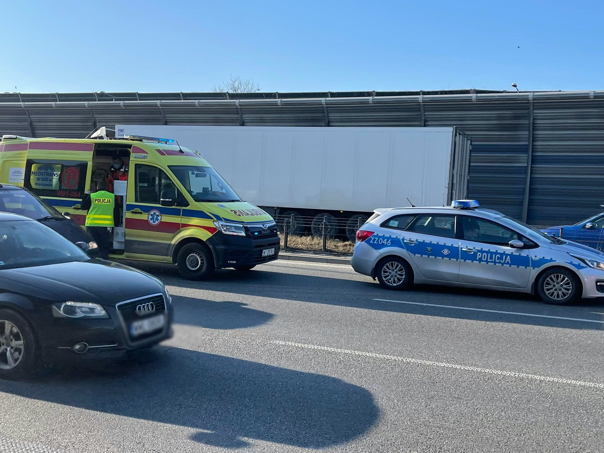 Sytuacja miała miejsce około godziny 14:00. Na trasie S8 pomiędzy Broniewskiego i Powązkowską zderzyły się dwa pojazdy. Były to jadące w kierunku Białegostoku samochody osobowe marki MBW i Toyota.
