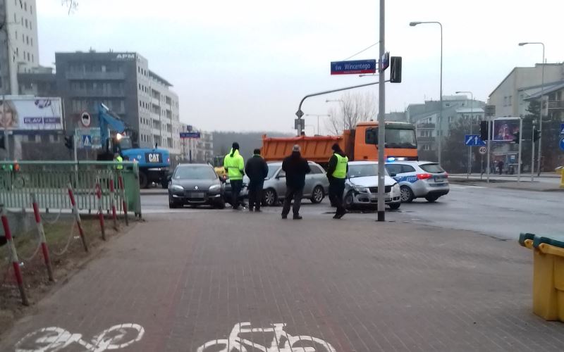 Zderzyły się toyota, skoda i renault. Nie ma osób rannych, ale występują utrudnienia. Kierowcy stoją w ogromnych korkach zarówno na ul. Św. Wincentego, jak i Kondratowicza w stronę Ząbek.