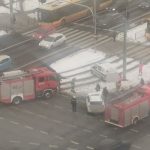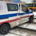 Karetka prywatna marki opel zderzyła się z samochodem osobowym marki mazda. Pojazdy zablokowały torowisko w obu kierunkach, po tym jak wpadła na nie karetka. Na miejscu pracują strażacy, karetka i policja. Dwa pasy w kierunku lotniska są zablokowane. Jak również zablokowane jest całe skrzyżowanie.