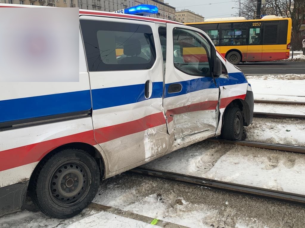 Zderzenie prywatnej karetki z samochodem. Ogromne utrudnienia na Ochocie