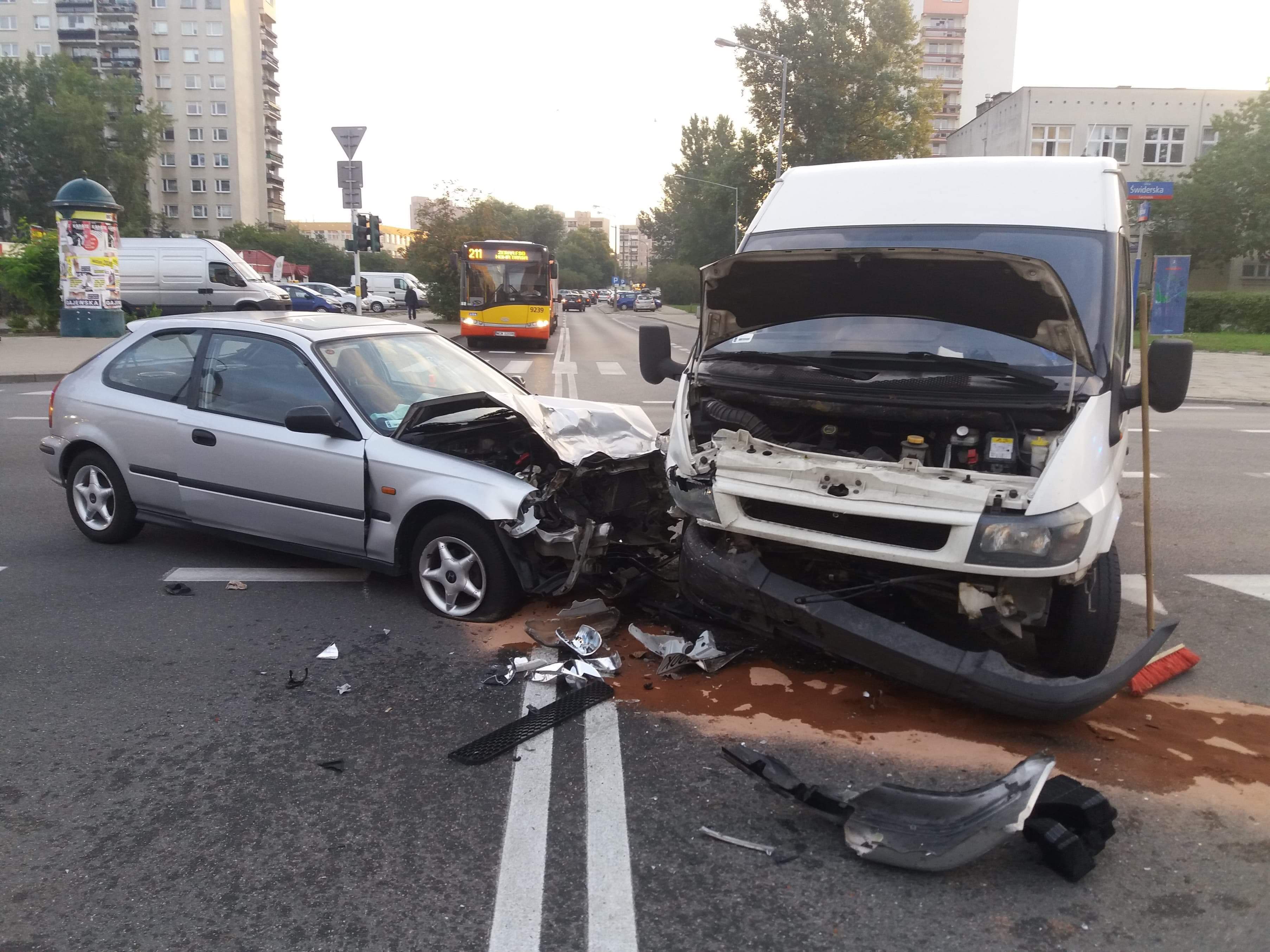 Na skrzyżowaniu Świderskiej z Porajów na Białołęce doszło do zderzenia samochodu osobowego z busem. Dwie osoby zostały ranne i trafiły do szpitala..
