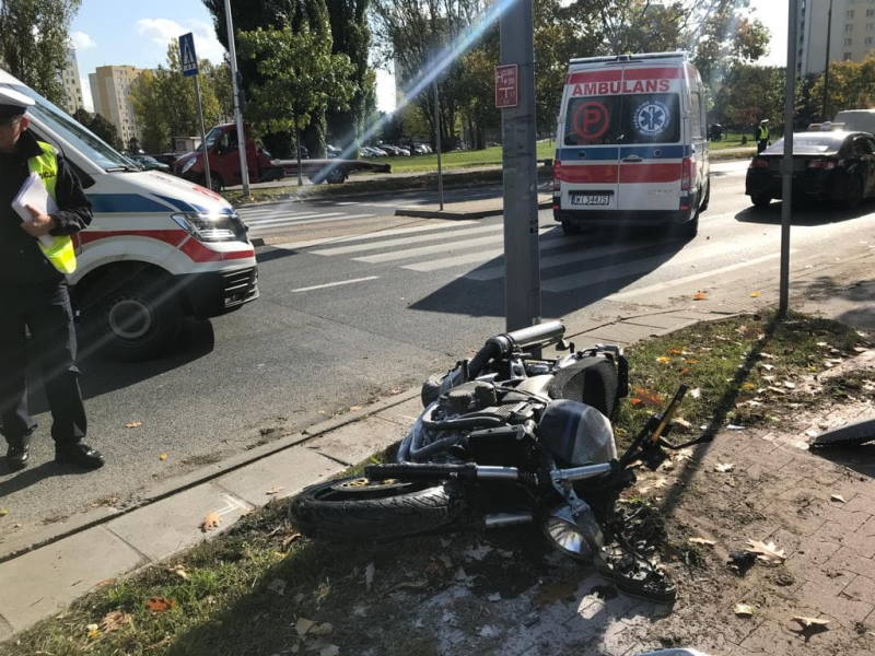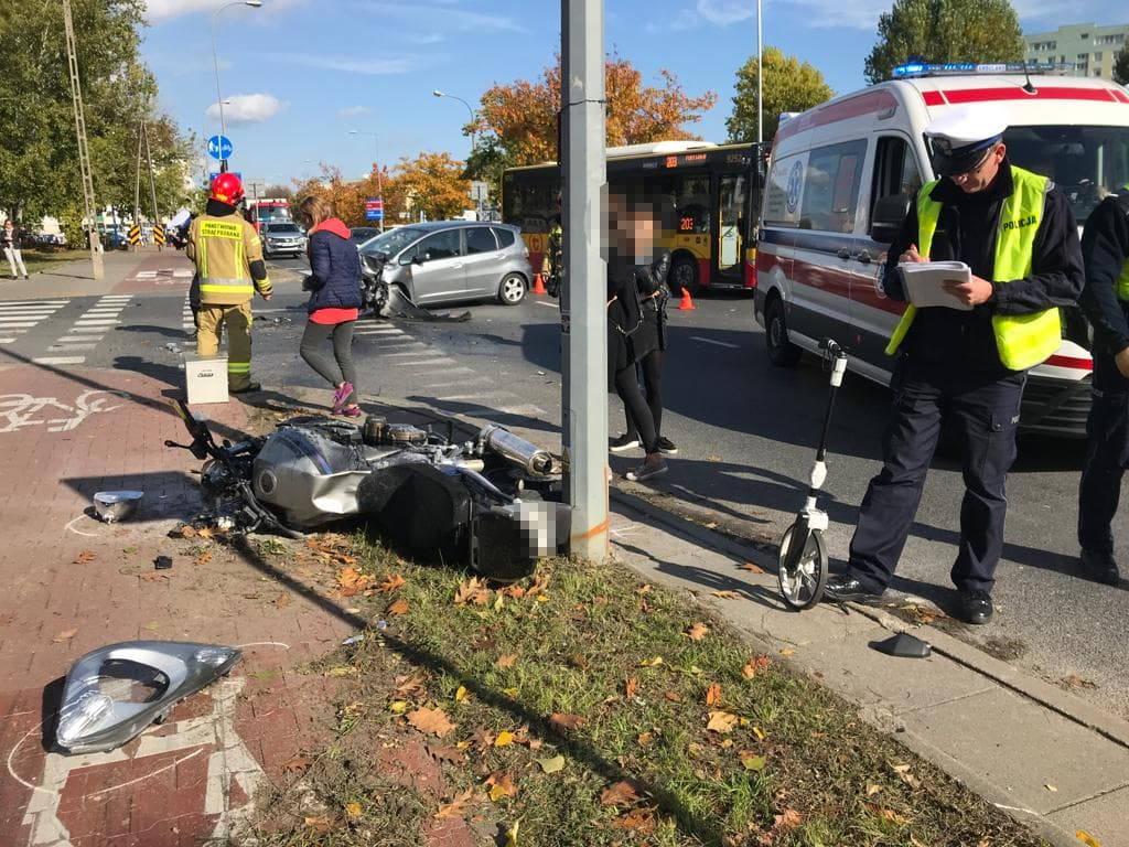 Na skrzyżowaniu ulic Sokratesa i Kaliszówka, niedaleko metra Młociny, doszło do poważnego zderzenia samochodu osobowego z motocyklem.