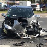 Zderzenie samochodu osobowego z motocyklem. Motocyklista jest w ciężkim stanie