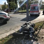 Na skrzyżowaniu ulic Sokratesa i Kaliszówka doszło do zderzenia hondy z motocyklistą. Kierowca jednośladu został zabrany do szpitala w ciężkim stanie.