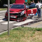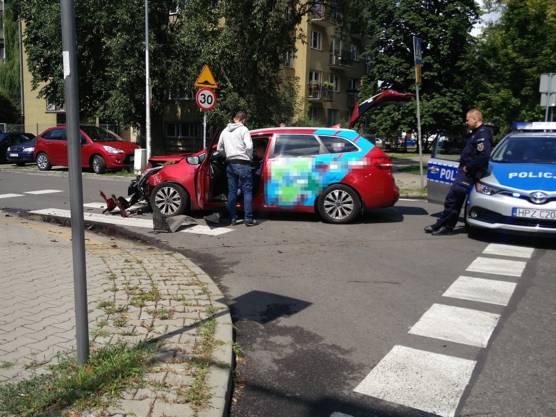 Zderzenie taksówki z innym samochodem osobowym. Droga zablokowana