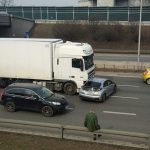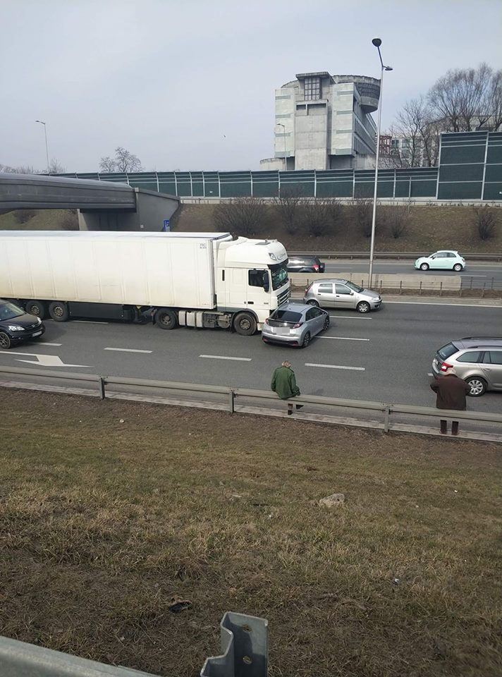 Na trasie S8 w stronę marek, na wysokości ul. Powązkowskiej doszło do zderzenia tira z samochodem osobowym. Są duże utrudnienia.