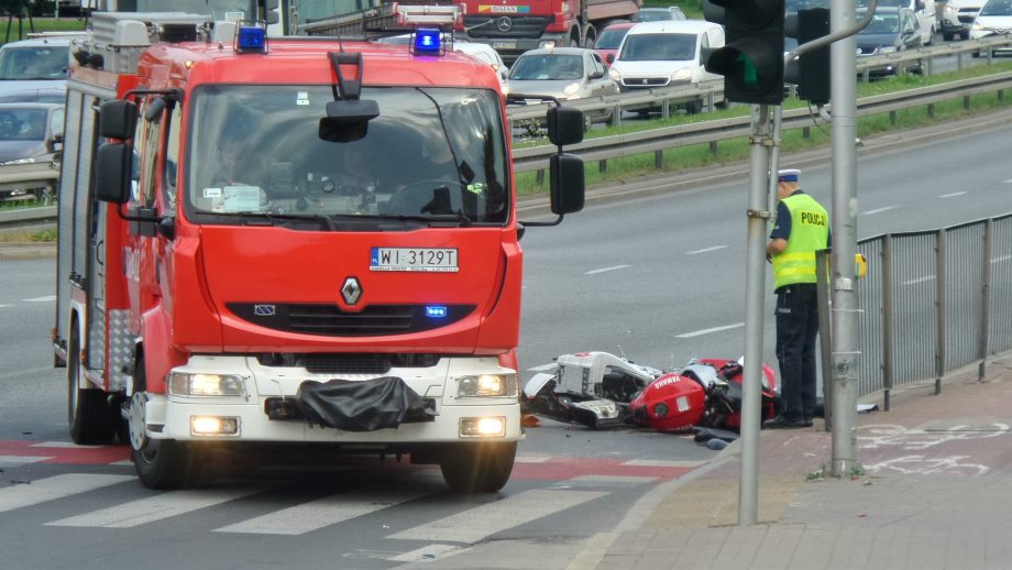 Na skrzyżowaniu ulic Wał Miedzeszyński i Fieldorfa doszło do zderzenia trzech pojazdów, w którym uczestniczył motocylista i dwa samochody osobowe. Występują ogromne korki.
