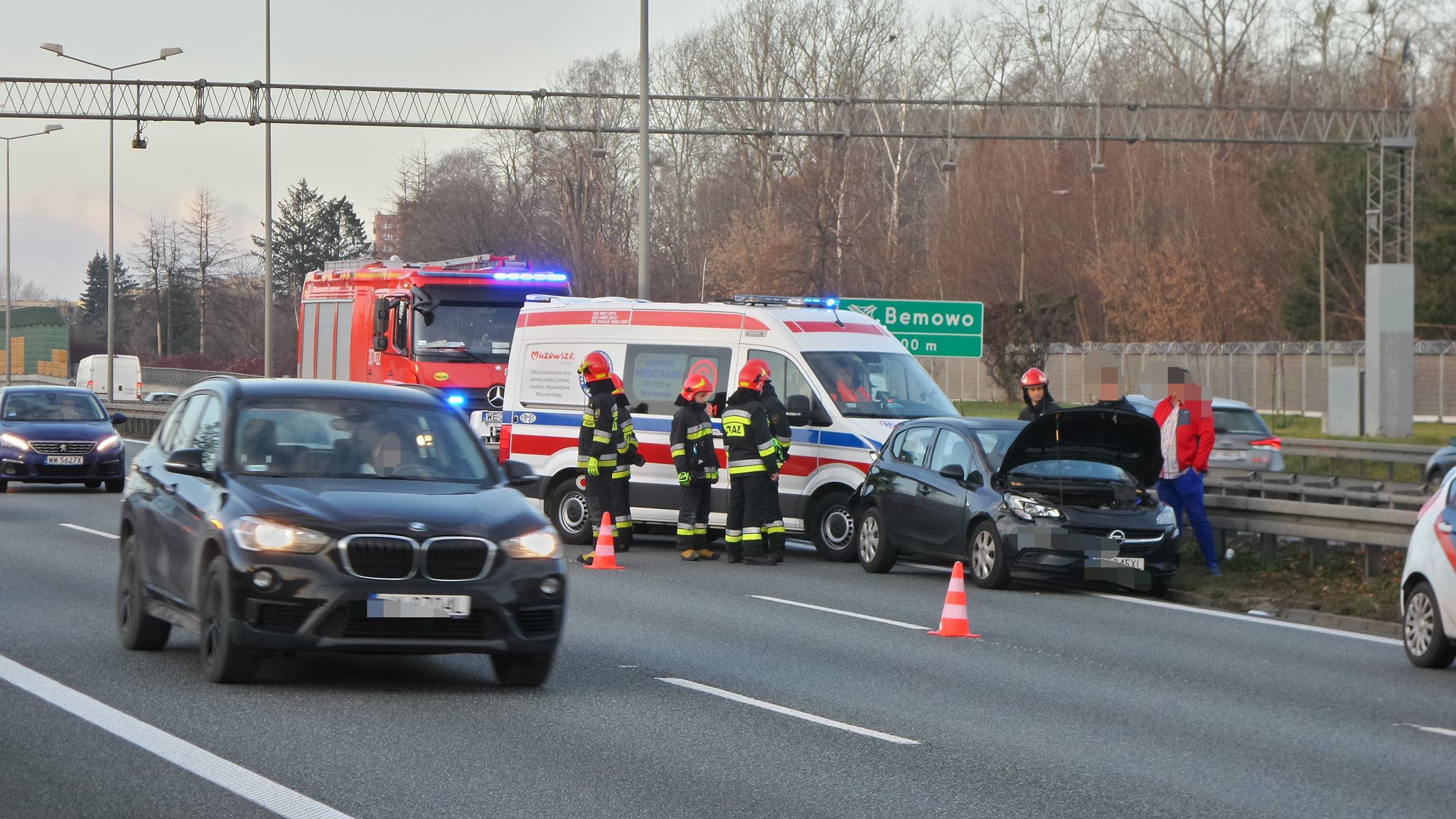 Na trasie S8 na wysokości Dywizjonu 303 w kierunku Marek doszło do zderzenia trzech samochodów osobowych. Kierująca oplem trafiła do szpitala.