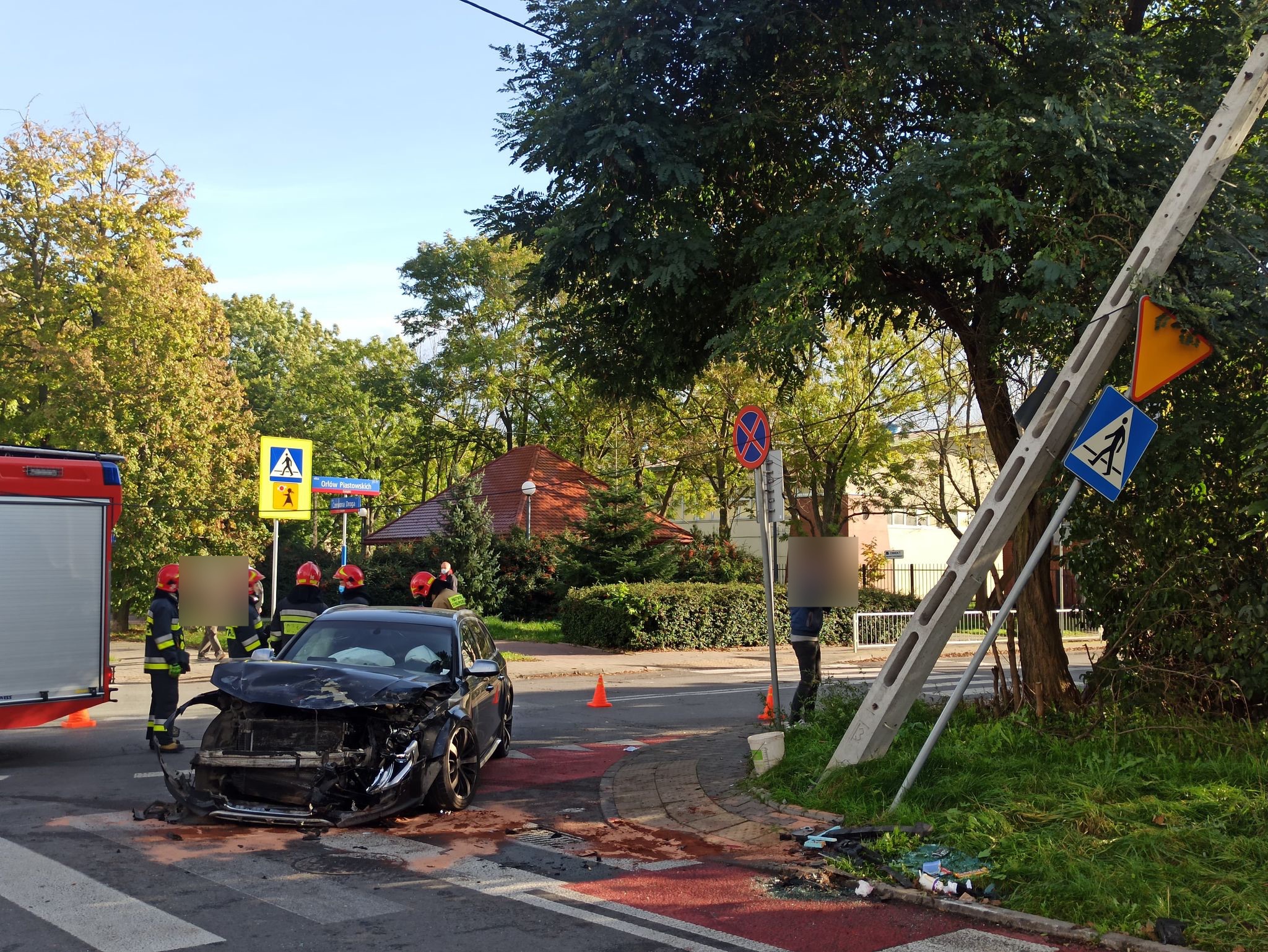 Na skrzyżowaniu ulicy Orłów Piastowskich z ulicą Czerwonej Drogi zderzył się bus z samochodem osobowym marki Audi. Bus uderzył w słup linii energetycznych, na którym zawisł bokiem. Uszkodzone zostały również znaki drogowe.