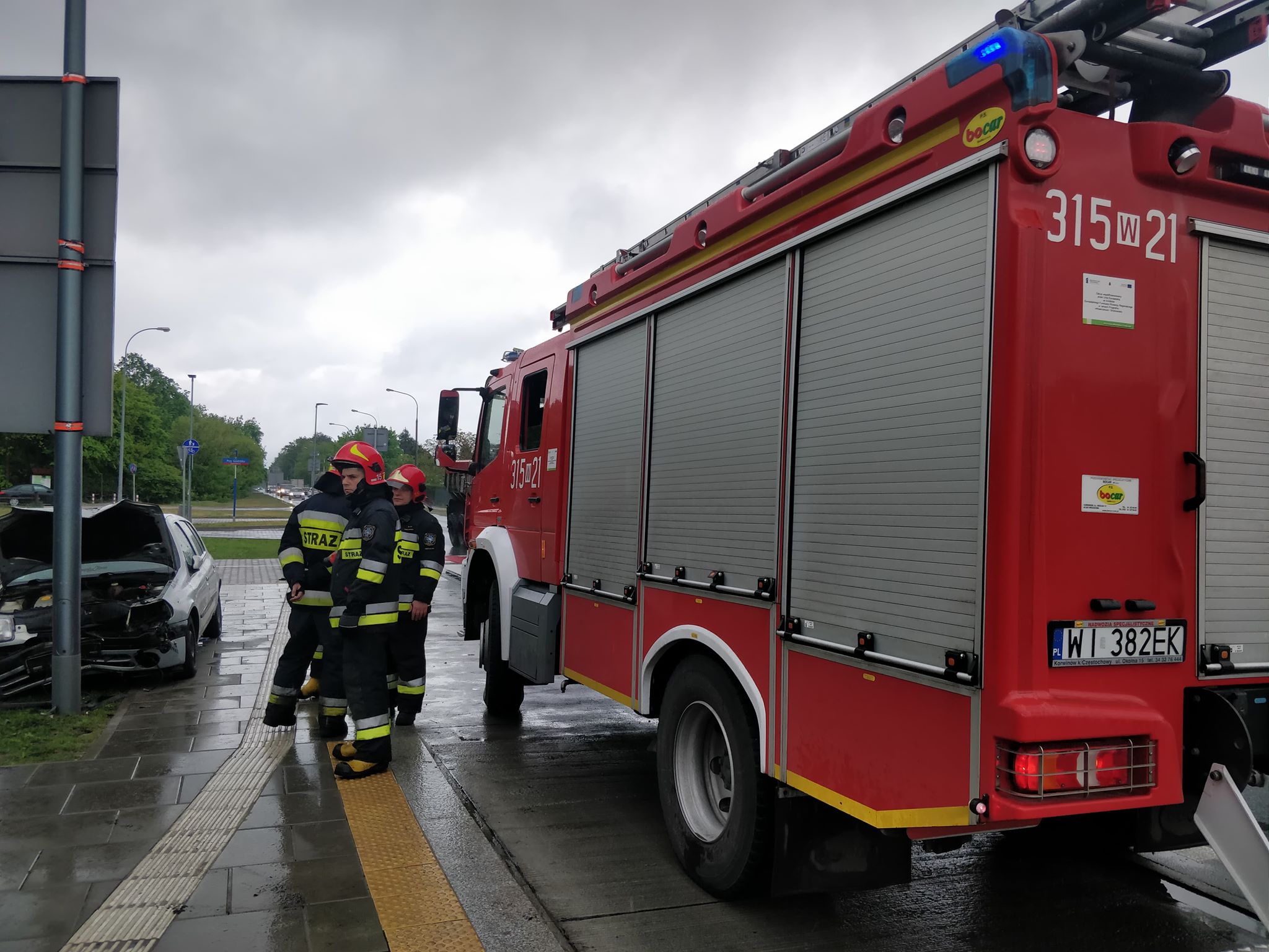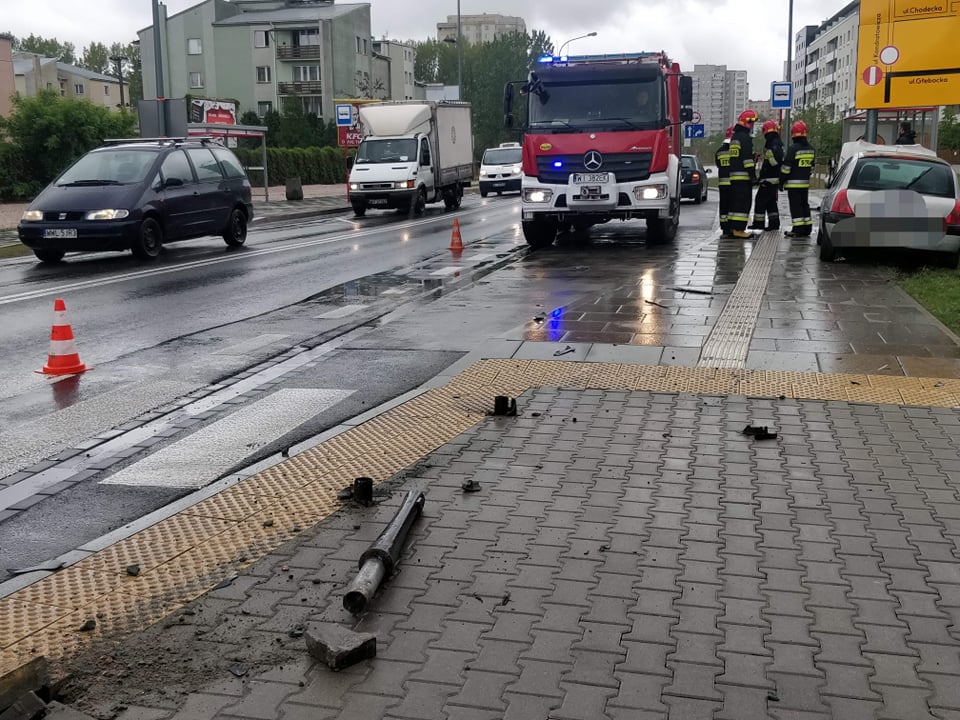 Renault po zderzeniu ze skoda wjechało w słupki, a następnie w latarnię. Kierowca oddalił się pieszo z miejsca zdarzenia. Na miejscu jest jeden zastęp straży pożarnej.