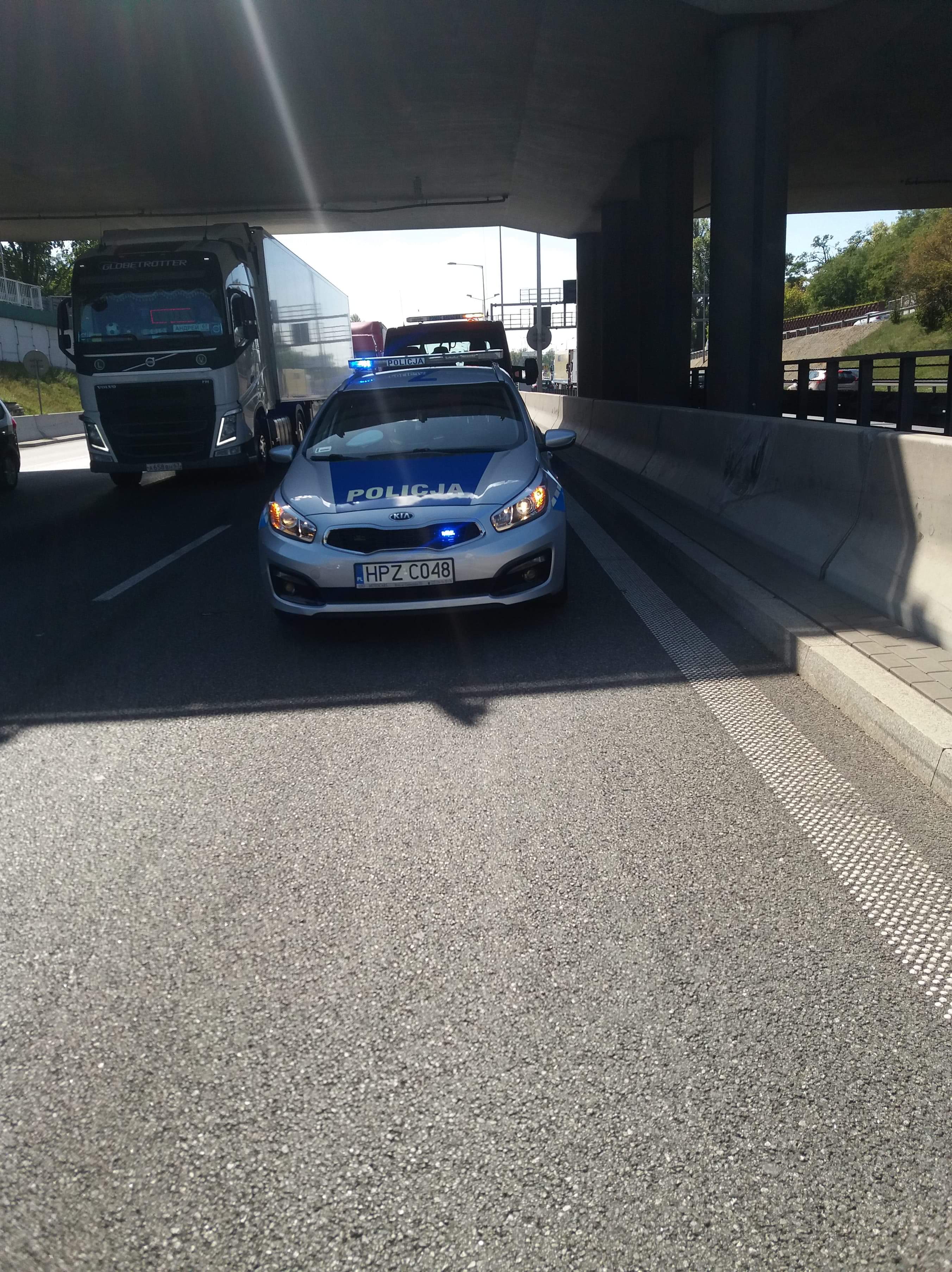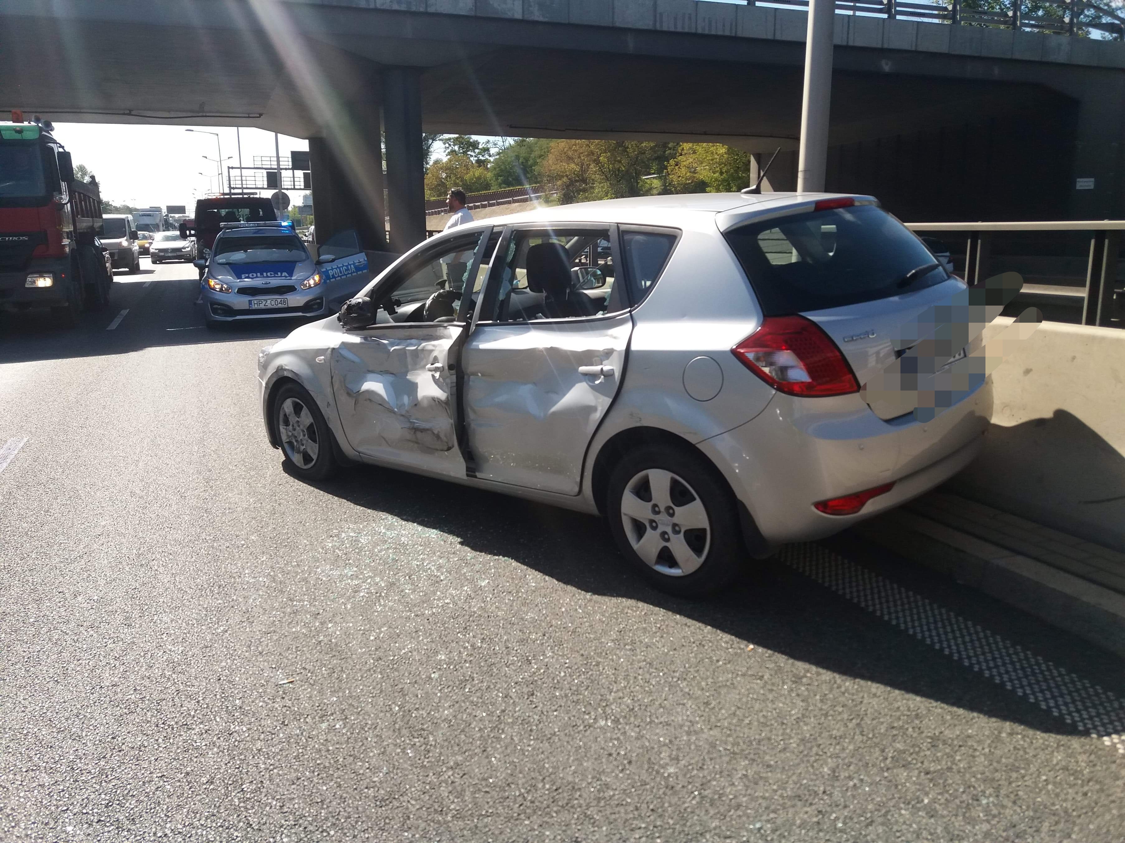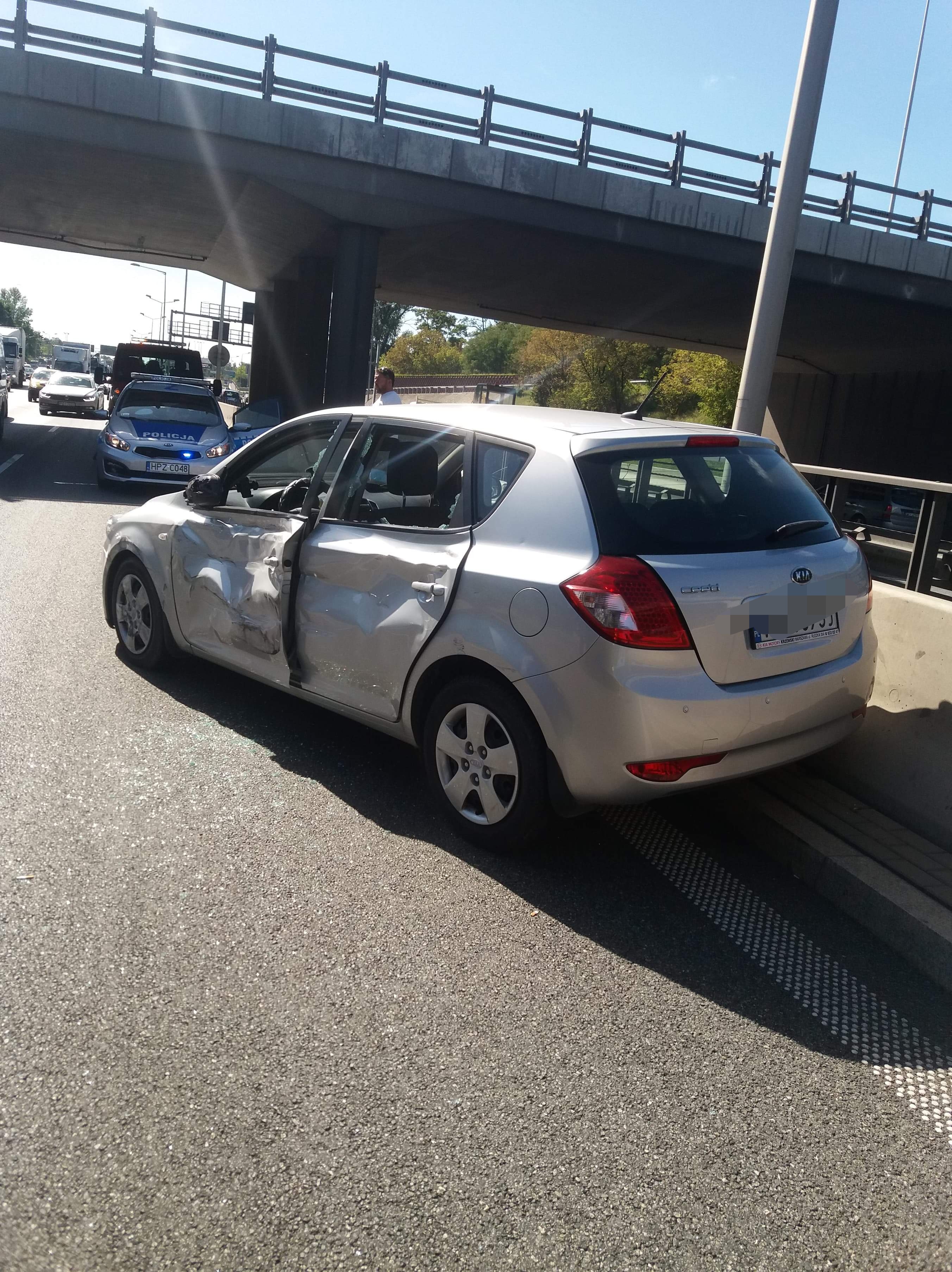 Na trasie S8 na wysokości Powązkowskiej doszło do zderzenia samochodu osobowego z samochodem ciężarowym. Dwójka dzieci badana jest w karetce pogotowia.