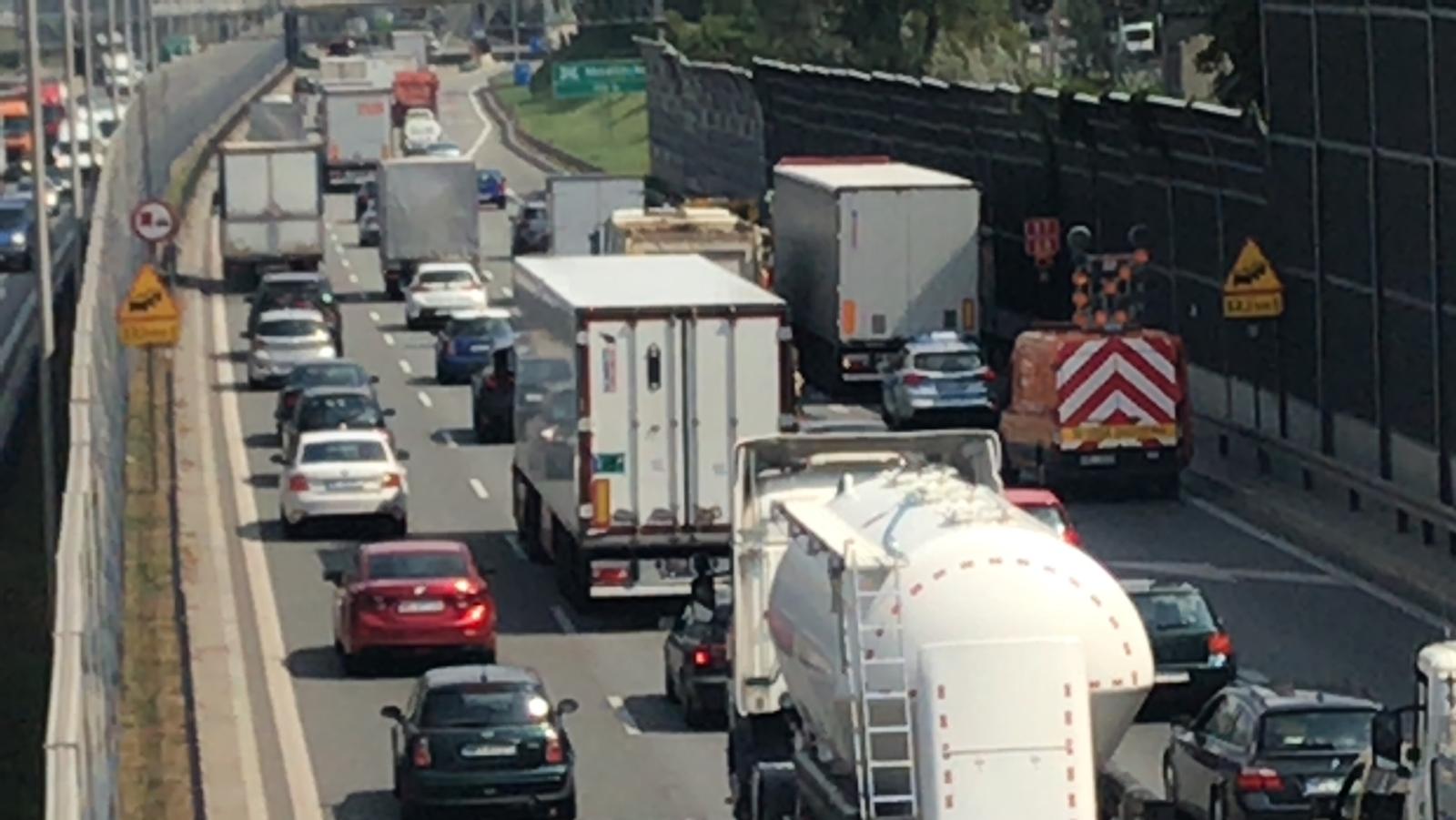 Na trasie S8 na wysokości Marymontu doszło do zderzenia samochodu osobowego z ciężarówką. Nikt nie został ranny.