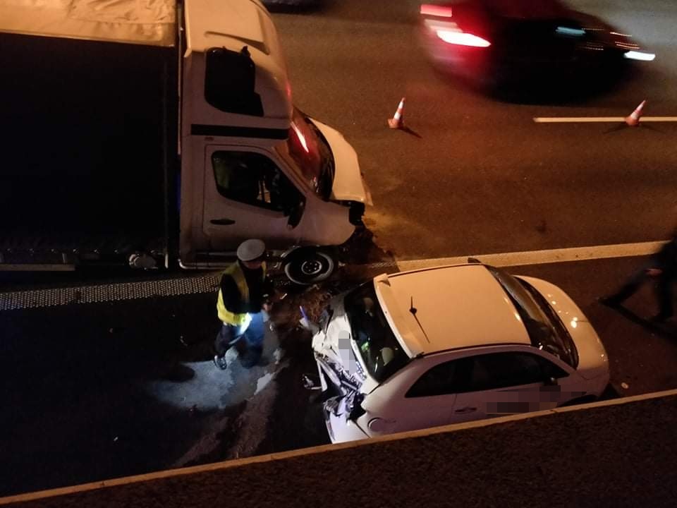 Zderzenie busa, dostawczaka i osobówki na trasie s8