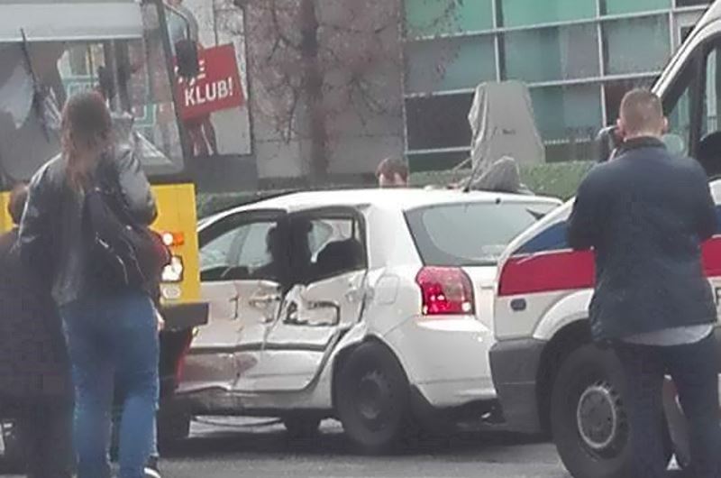 Zderzenie tramwaju z samochodem osobowym. Ruch szynowy wstrzymany