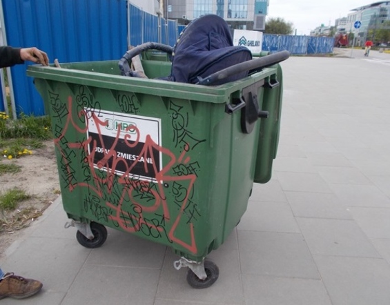 Mężczyzna pchający poboczem jezdni 1100-litrowy pojemnik na śmieci typu „Bóbr” zwrócił uwagę strażników miejskich z Oddziału Ochrony Środowiska, którzy patrolowali okolice Ronda Daszyńskiego. Funkcjonariusze podjęli interwencję. Jak się okazało 55-letni mężczyzna ukradł pojemnik z posesji przy ul. Siennej. Jak powiedział strażnikom miejskim, pojemnik miał mu posłużyć do przewiezienia rzeczy osobistych. Na miejsce wezwano patrol policji oraz pracownika firmy, która odebrała pojemnik.