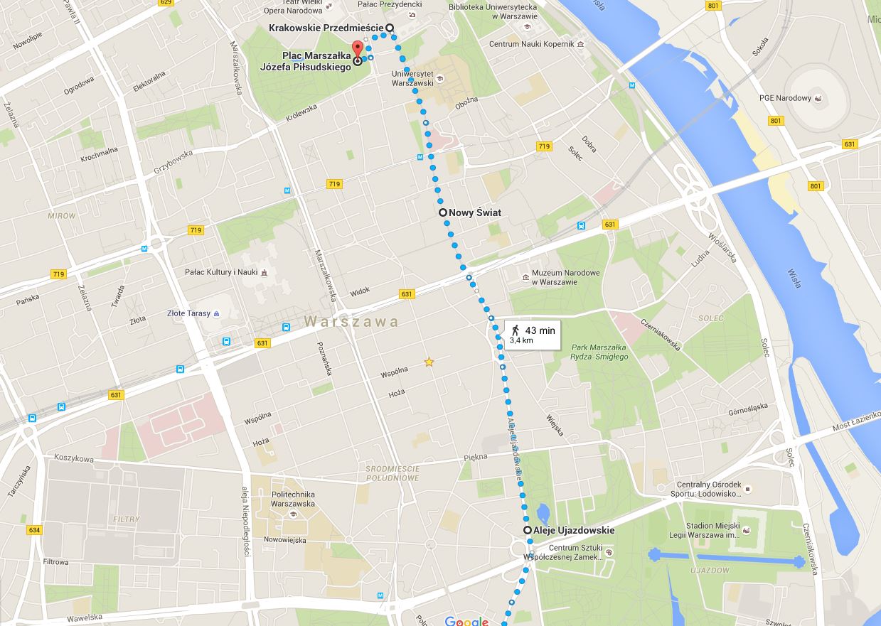 Wszystkie pochody i marsze odbędą się w południe. KOD gromadzić się będzie pod siedzibą Trybunału Konstytucyjnego na ul. Szucha. Stamtąd manifestacja uda się Al. Ujazdowskimi, Nowym Światem, Krakowskim Przedmieściem, Królewską i zakończy się na pl. Piłsudskiego.
