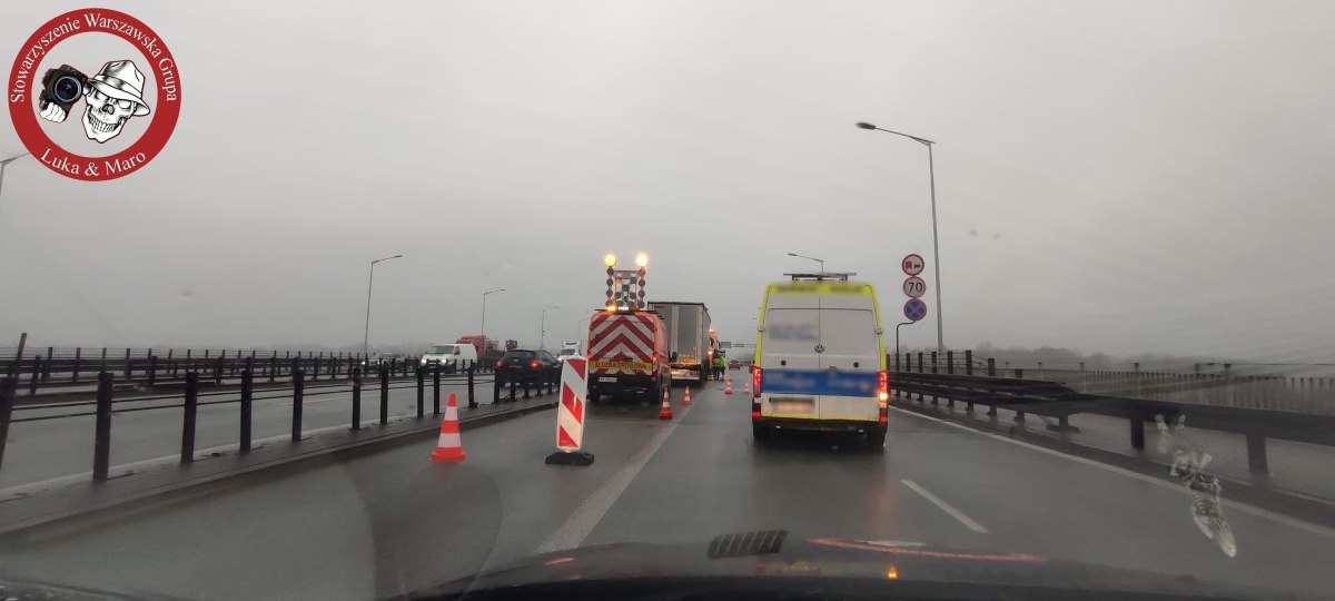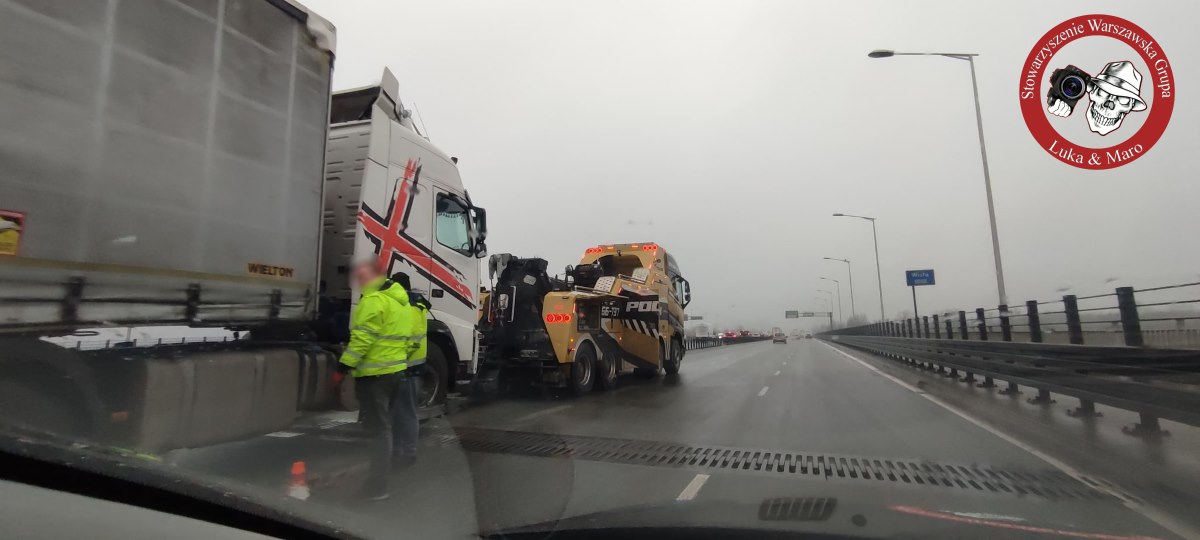 Jak informuje nas reporter Marek Śliwiński z Warszawskiej Grupy Luka&Maro na moście Grota Roweckiego doszło do awarii samochodu ciężarowego, który w efekcie zablokował niemal cały most.