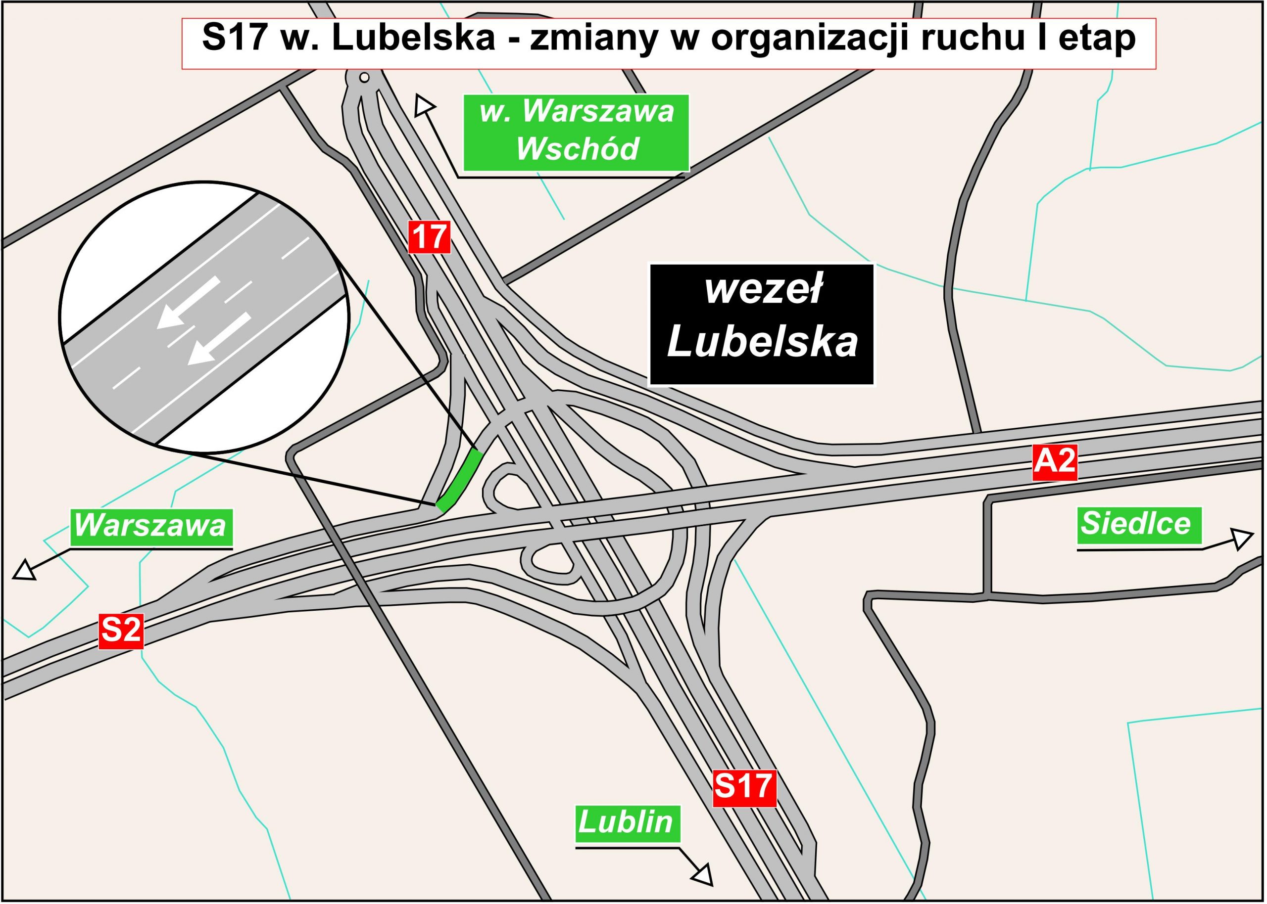 Powyższe zmiany wprowadzimy w ramach czasowej organizacji ruchu, a jeszcze w listopadzie ogłosimy przetarg na opracowanie docelowego projektu stałej organizacji ruchu. Zadaniem przyszłego wykonawcy będzie opracowanie analiz i prognoz ruchu, a także budowa przewiązki, która umożliwi przywrócenie ruchu na łącznicy relacji A2 Terespol – S17 Lublin. Powstanie ona pomiędzy jezdnią zbiorczo rozprowadzającą a jezdnią główną S17 w kierunku Lublina, na wysokości łącznicy zjazdowej z S2 na S17.