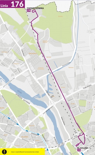 W toku konsultacji otrzymaliśmy dużą ilość postulatów o utrzymanie bezpośredniego dojazdu z rejonu Choszczówki i Płud do placu Hallera w tym m.in. do przychodni znajdującej się przy ulicy Dąbrowszczaków. Wychodząc naprzeciw potrzebom przede wszystkim starszej grupy pasażerów podjęliśmy decyzję o utrzymaniu obecnej trasy linii 176.