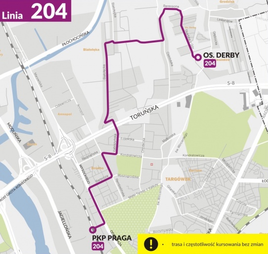 Propozycja dotycząca tej linii zakładała pozostawienie bez zmian jej trasy, jednak miała ona kursować nieco częściej w godzinach popołudniowego szczytu. W związku z pojawianiem się możliwości powstania nowego połącznia z wykorzystaniem odcinka ulicy Daniszewskiej łączącego ul. Białołęcką z ul. Szlachecką, która ma powstać jeszcze w tym roku, tabor przeznaczony pierwotnie do zwiększenia częstotliwości kursowania linii 204 planujemy wykorzystać do przedłużenia linii 334, która połączy zieloną Białołękę z liniami tramwajowymi na Żeraniu Wschodnim. W związku z tym obecnie częstotliwość kursowania linii 204 nie ulegnie zmianie, natomiast w przyszłości jej rozkład jazdy zostanie skoordynowany z nowym rozkładem jazdy linii 334 dojeżdżającej do Żerania Wschodniego.