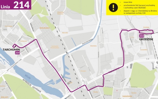 Propozycja przedstawiona do konsultacji dotycząca linii 132 zakładała kursowanie tej linii na zmienionej trasie w rejonie zielonej Białołęki co pozwoliłoby na skrócenie czasu podróży do linii metra M1. Dodatkowo linia miała kursować częściej poza szczytem i w dni świąteczne. Podczas konsultacji napłynęło do nas wiele próśb od pasażerów korzystających z tej linii na ulicy Ostródzkiej o pozostawienie możliwości dojazdu tą linią w rejon Grodziska. Na podstawie tych uwag modyfikacji ulega trasa linii 214, która zapewni to połączenie.