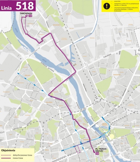 z powyższym trasy linii 314 i 518 pozostaną bez zmian do czasu realizacji powyższych inwestycji. Przewidywany termin wprowadzenia zmian to 1.09.2017.