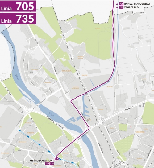 Propozycja zakładała skrócenie tras tych linii do węzła przesiadkowego Żerań FSO. Jednak z uwagi na liczne postulaty uczestników konsultacji o utrzymanie obecnych tras w tym m.in. mieszkańców gminy Nieporęt, którzy podkreślali jak ważne jest dla nich bezpośrednie połączenie z linią metra, podjęto decyzję o pozostawieniu tras linii 705 i 735 bez zmian. W związku z tym linie te nadal będą dojeżdżać do pętli METRO MARYMONT.