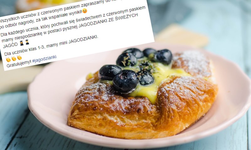 Dla każdego ucznia, który pochwali się świadectwem z czerwonym paskiem mamy niespodziankę w postaci pysznej JAGODZIANKI ZE ŚWIEŻYCH JAGÓD