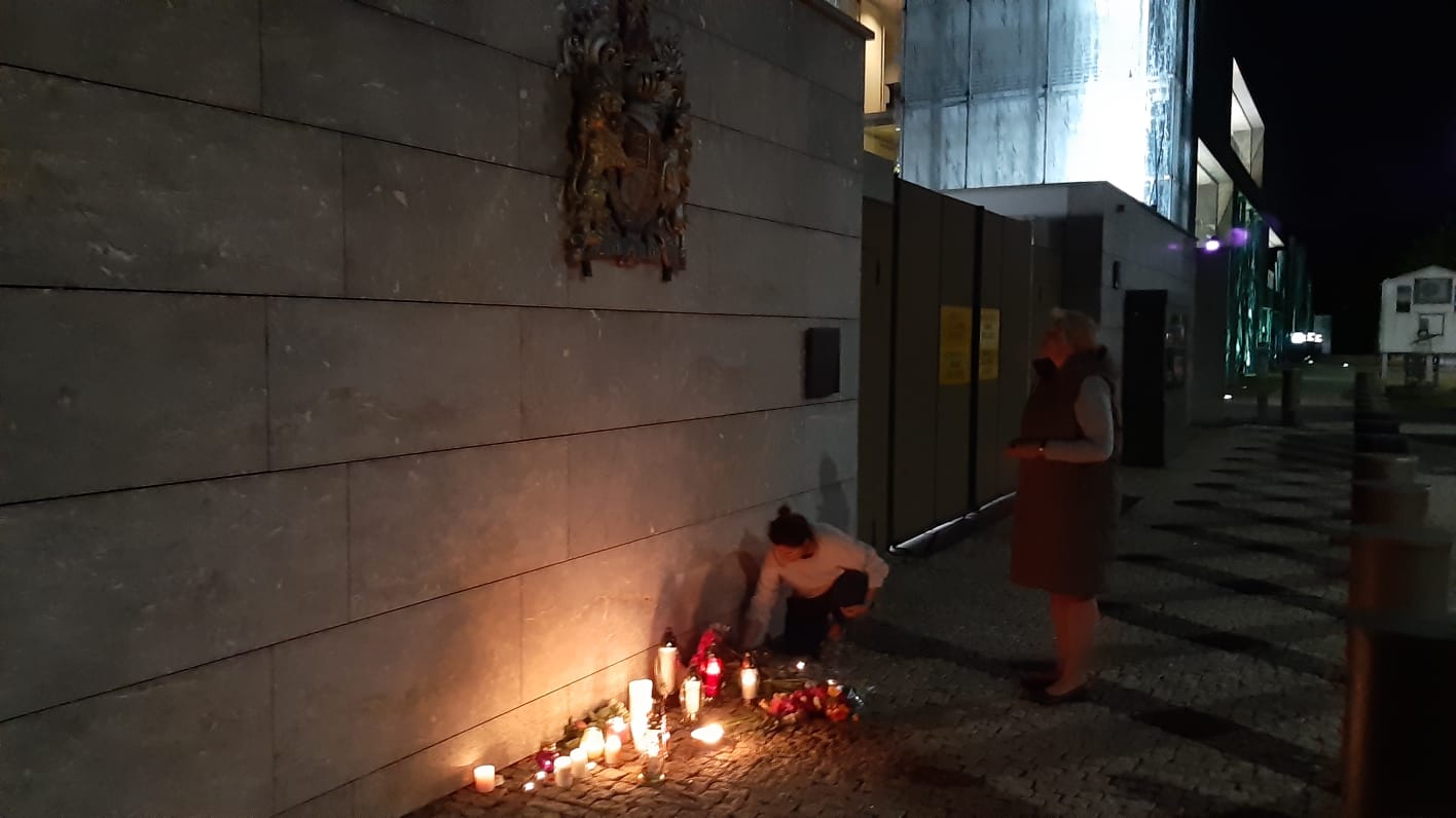 Znicze i kwiaty pod Ambasadą Wielkiej Brytanii