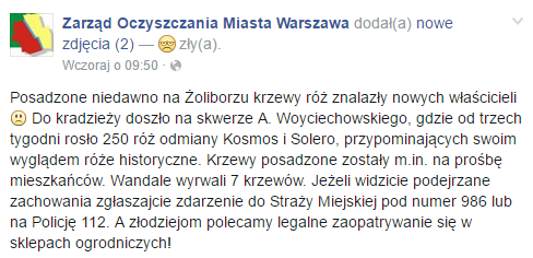 Dziwi nas podejście niektórych ludzi, którym wydaje się, że jak coś jest wspólne to jest i ich, a więc mogą to sobie przywłaszczyć. Kwiaty wsadzone przez ZOM miały cieszyć oko wszystkich mieszkańców Żoliborza, tymczasem ktoś potraktował je jak darmowe sadzonki