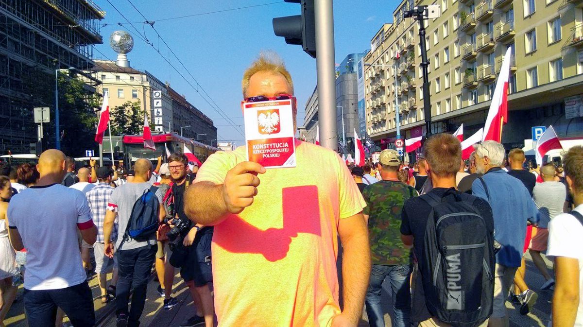Kilka tygodni temu sieć podbił film na których dwóch mężczyzn wyzywa idących na manifestację pod Sejmem ludzi. Podszedł do nich Jeremy, Polak, który wychował się w Stanach, ale od pięciu lat mieszka w Polsce. Dzięki spokojowi i argumentacji udało mu się nie tylko ich uciszyć, ale także… przytulić. Teraz pokazywał konstytucję przechodzącym w marszu narodowców. Twierdzi, że został poturbowany.